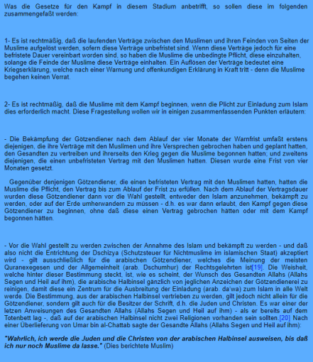 Muslime dürfen den Kampf gegen Ungläubige beginnen, sofern es, Zitat, „die Pflicht zur Einladung des Islams erforderlich macht.“