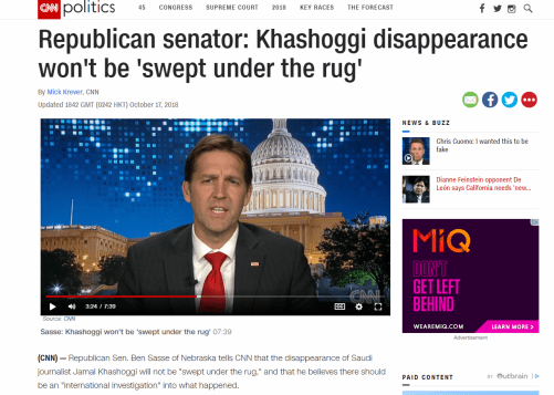 Sasse / Republican Senator: Kashoggis disappearance won´t be swept under the rug