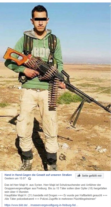 „Ihr könnt gerne anderen die Hucke voll lügen, es geht nur um eines: Aufgebrachte und trauernde Bürger als Nazis zu beschimpfen um jede öffentliche Kritik an Massenvergewaltigungen durch eure geliebten Refugees mit Gewalt zu verunmöglichen.“