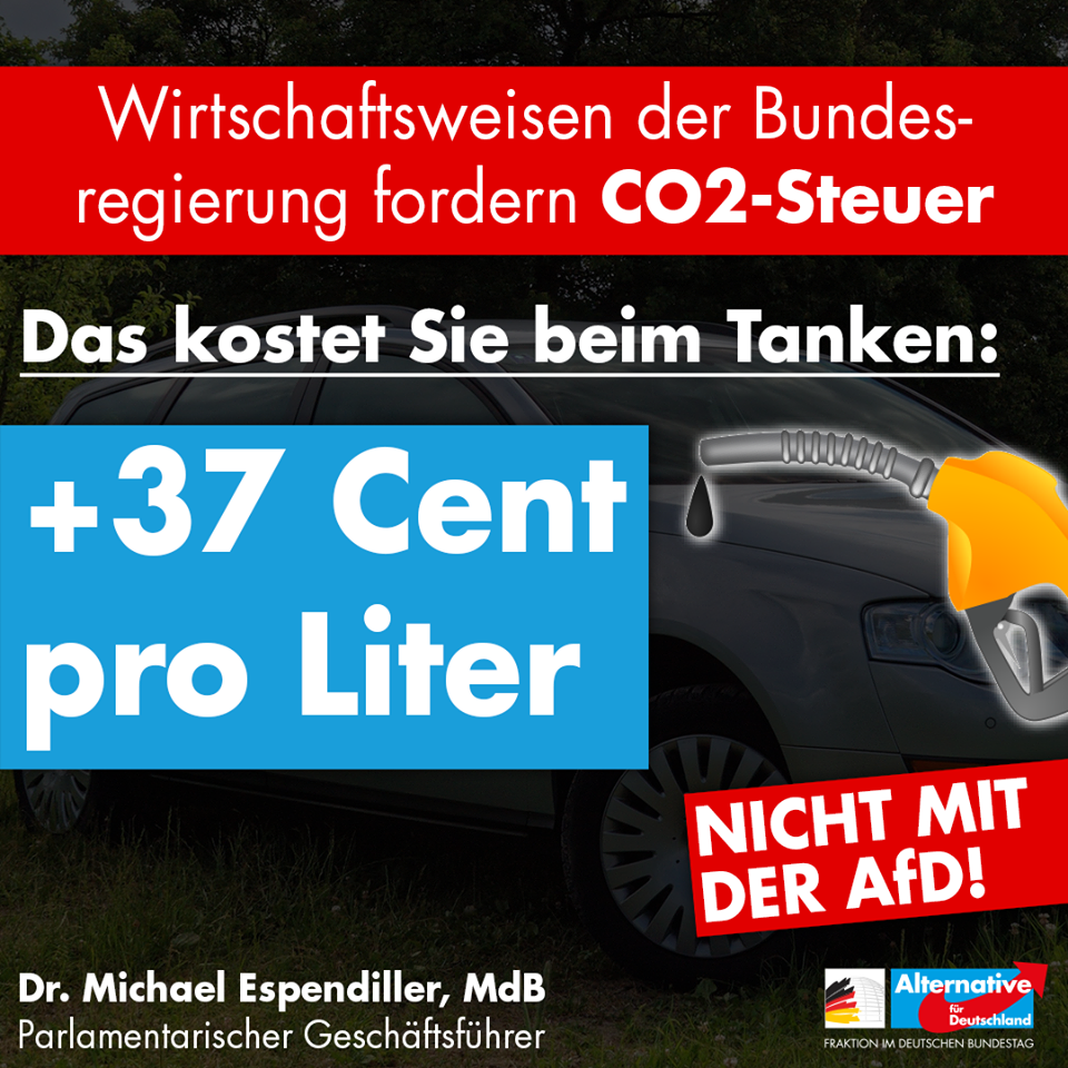 Die AfD ist deswegen weiter konsequent gegen die Einführung einer CO2-Steuer. Das ist nämlich nur eine grün lackierte sozialistische Umverteilung von den Fleißigen zu den Faulen und zu denen, die in Amtsstuben sitzen und die neuen Klimabürokraten werden. Damit belastet man die Landbevölkerung, Pendler und Familien noch mehr. Diese Politik ist unsozial durch und durch!