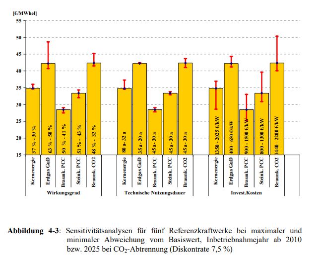 Wie auch immer man es rechnen mag: Erneuerbare Energie kostet das Zwei- bis Dreifache – selbst wenn eine CO2-Bepreisung eingeführt wird und selbst wenn die fossilen Kraftwerke eine CO2-Absonderung und -Speicherung vornehmen.