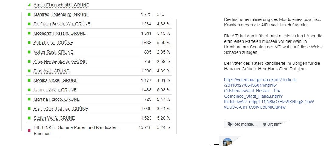 Der Vater des Täters kandidierte im Übrigen für die Hanauer Grünen: Herr Hans-Gerd Rathjen. Sind damit jetzt auch die Grünen mitschuldig an den Morden ?