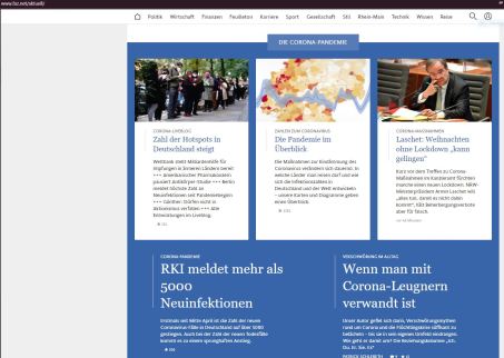 Bild: FAZ schreibt noch immer von Corona-Leugnern und Verschwörern (Bildschirmfoto FAZ Online / Soziale Medien Oktober 2020)