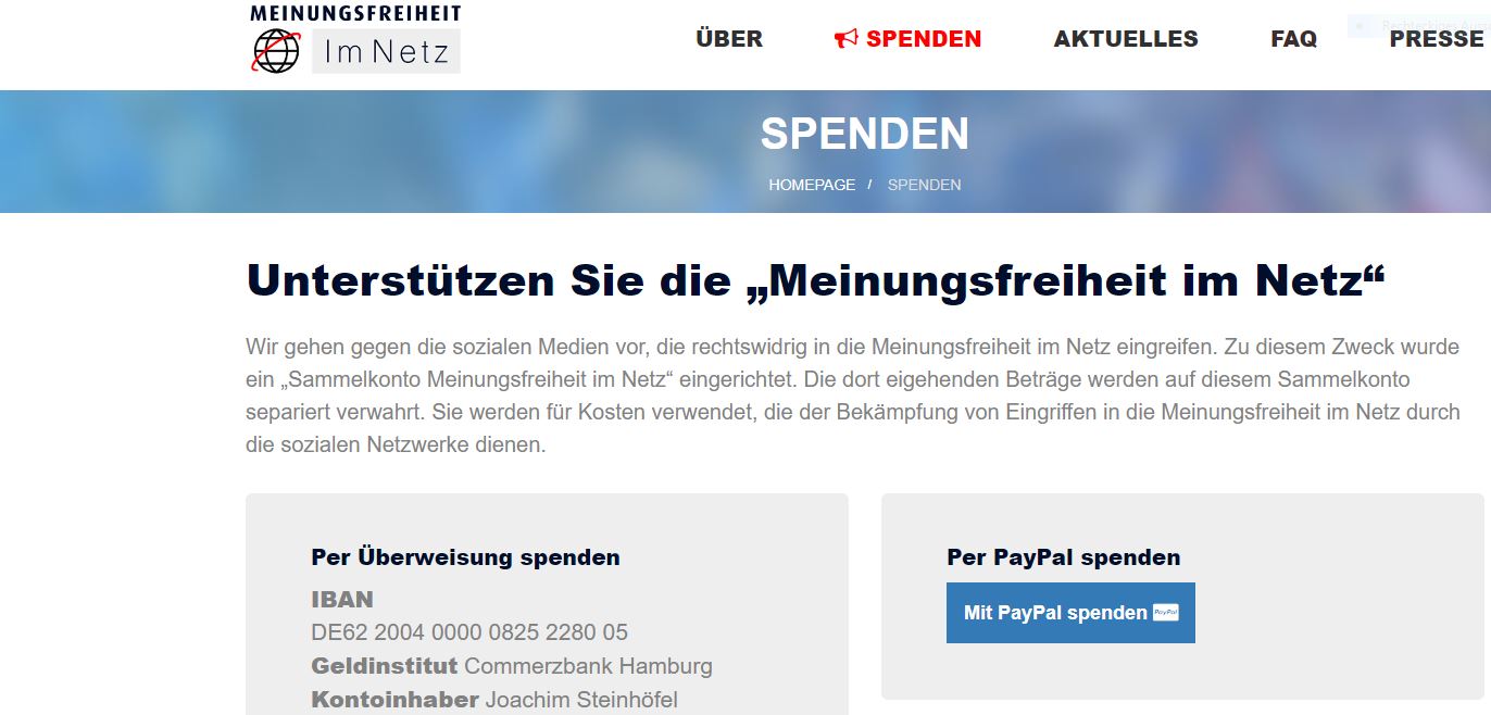 Die Publizisten Henryk M. Broder, Vera Lengsfeld und Alexander Wendt riefen damals zu Spenden auf, um Gerichtsverfahren gegen die Einschränkung der Meinungsfreiheit zu unterstützen. Der Fonds ermöglichte seitdem diesen Prozess und zahlreiche andere gegen Facebook, Twitter, Instagram und YouTube.