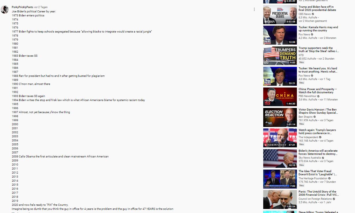 Trump accused the same thing of the „Big Media“, „Big IT“ and „Big Finance“ industries in his speech on November 5, 2020.