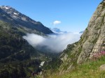 Blick auf die Wolkendecke zwischen die Alpengebirge im Bereich Sustenpass / Schweiz