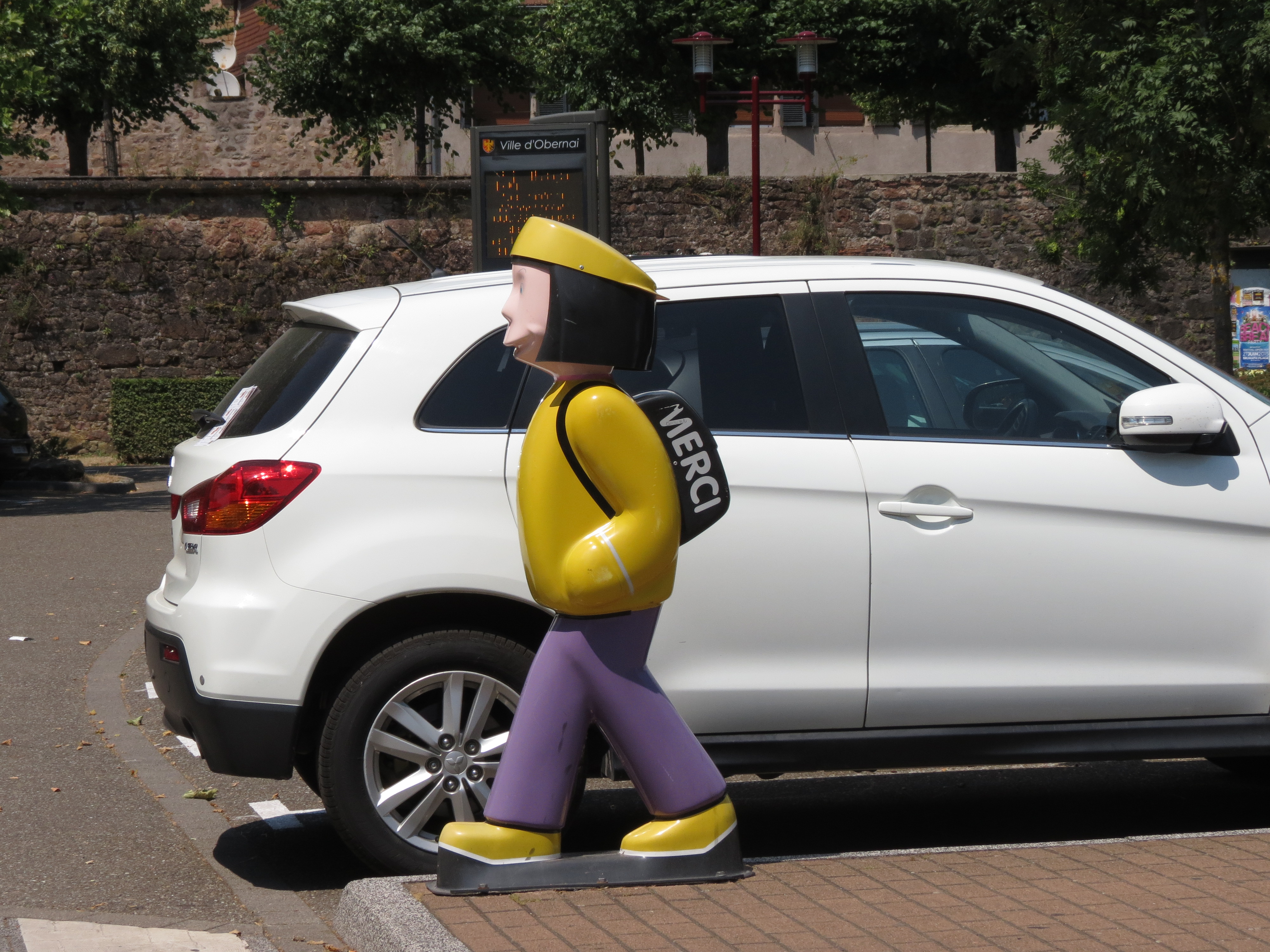 Parkplatz Obernai mit Schülerinnen-Figur am Überweg