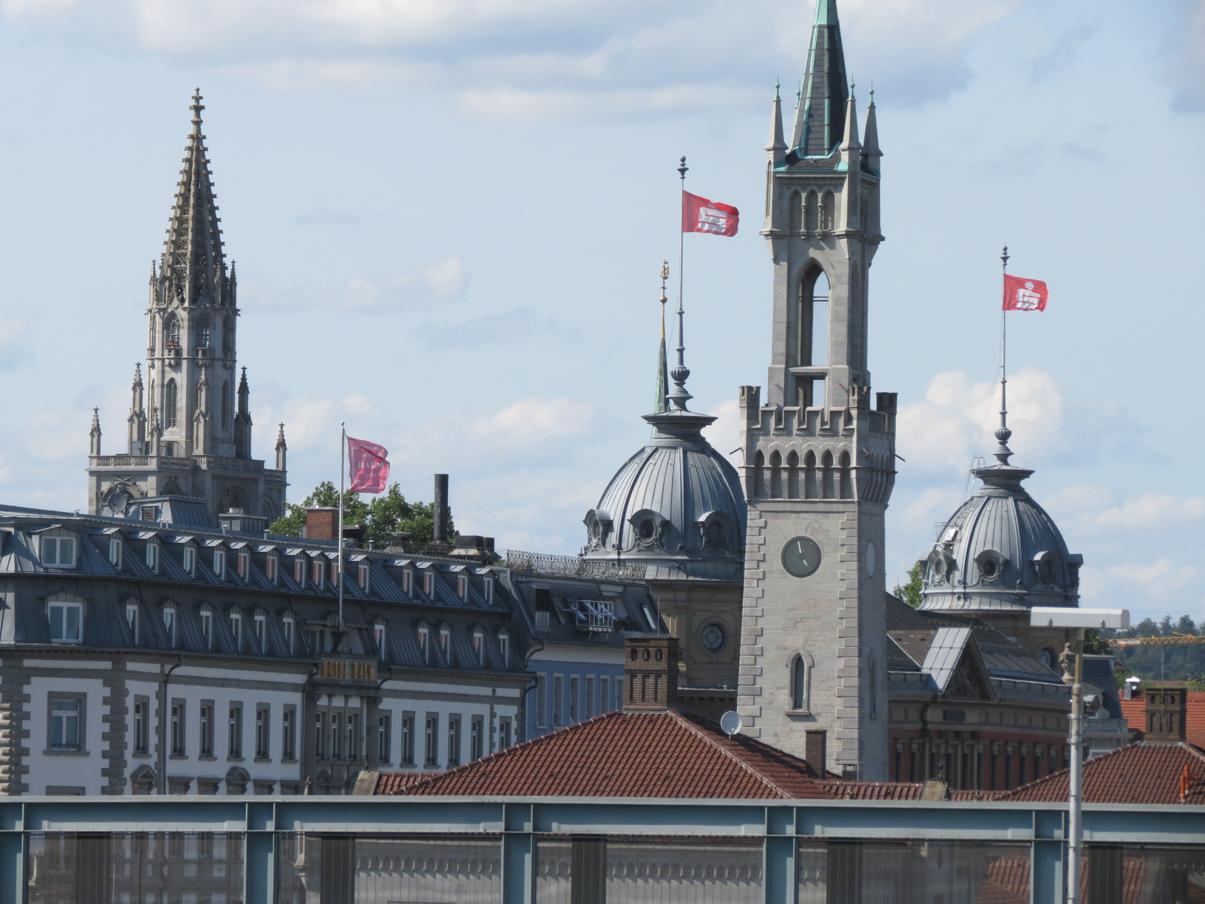 Konstanz, Blick von Fussgängerbrücke (Gleisüberquerung) auf Innenstadt