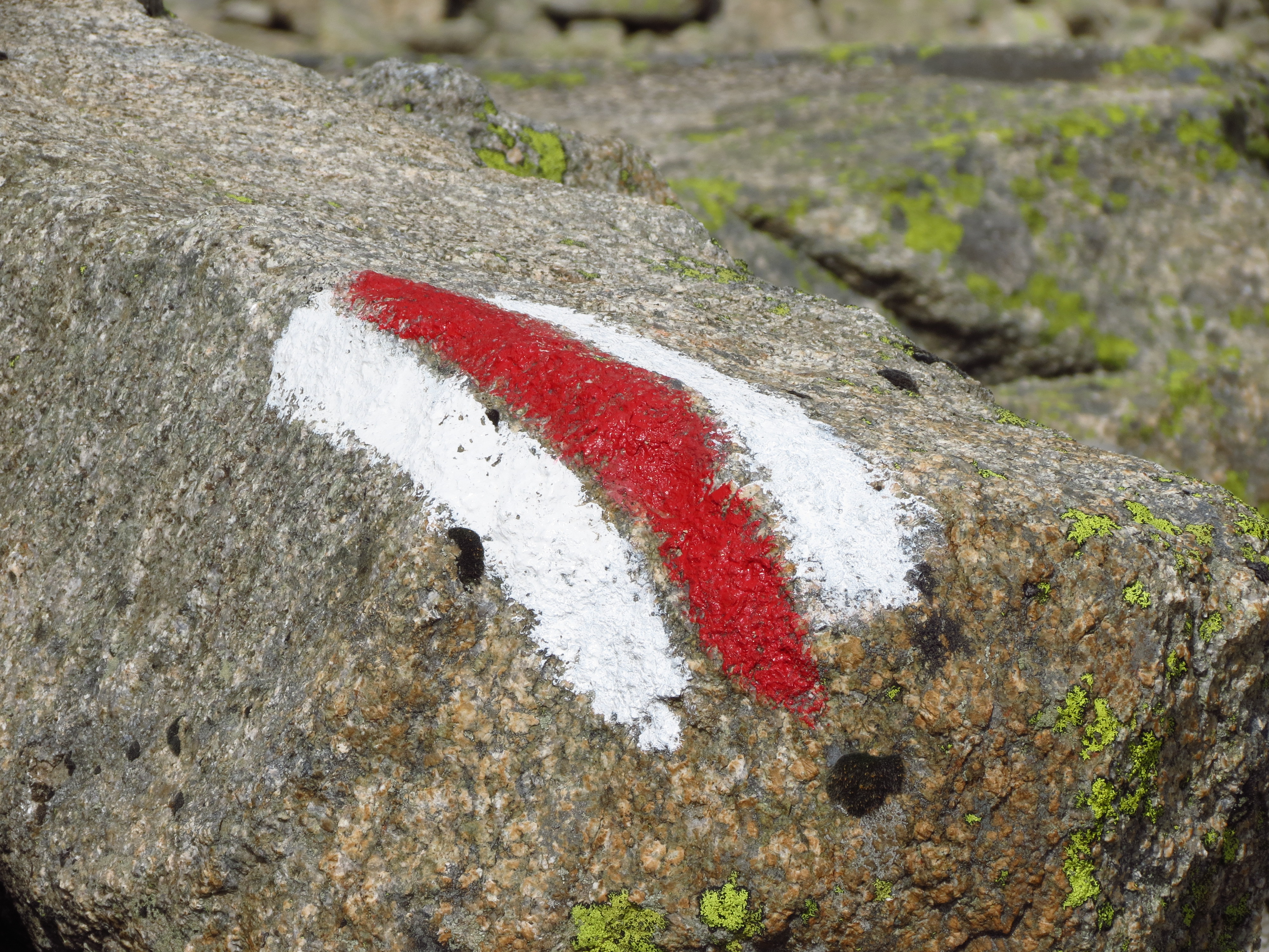 Wanderwegsmarkierung in der Schweiz mit den Nationalfarben der Schweiz