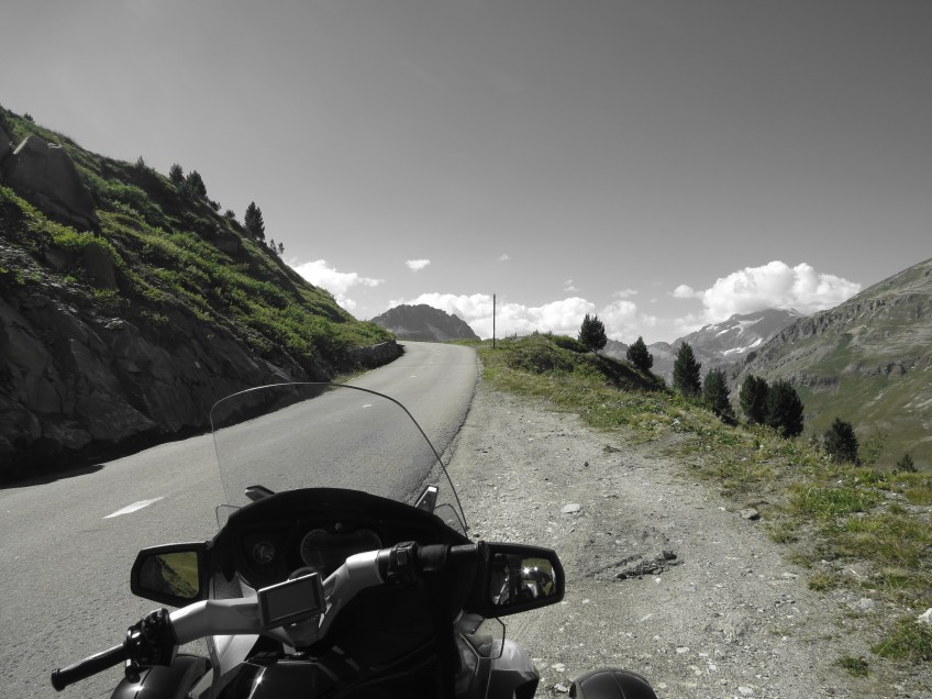 Pausenhalt aus Val d´Isère hinaus- und hinauffahrend Richtung Aostatal