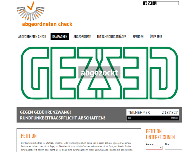 Petition GEZ-Zwangsgebühren abschaffen – machen Sie mit !