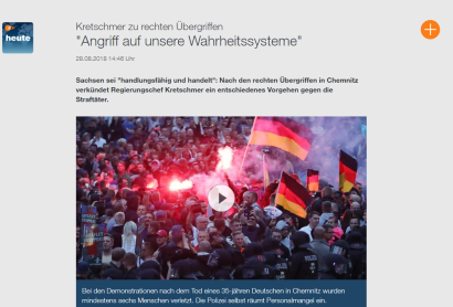Insofern reiht sich seine spektakuläre Darstellung nicht nur in die Aussagen des sächsischen Generalstaatsanwalts und des Ministerpräsidenten ein, die beide bereits Angelas Merkels Aussagen von den „Hetzjagden“ bestritten haben. Sie hat auch eine völlig neue Qualität: Es wurde bewusst gefälscht, um nicht über die zahlreichen Morde von „Flüchtlingen“ – mit dem Massaker von Chemnitz als Höhepunkt – diskutieren zu müssen. In den Vordergrund sollte die Gefahr von rechts gestellt werden. An der Spitze dieser Bewegung: Bundeskanzlerin Angela Merkel.